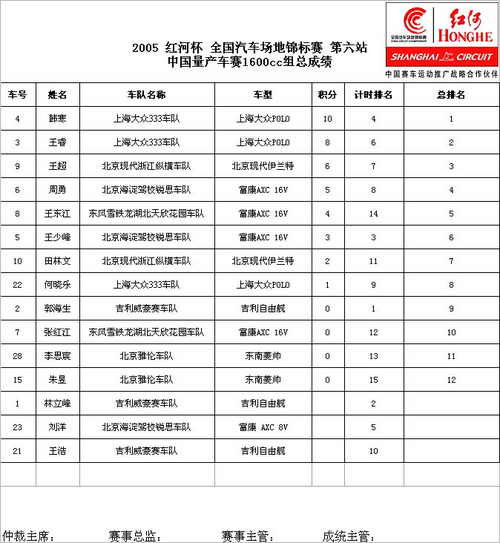 2005年全國汽車場地錦標賽第六站1600CC組總成績 |
