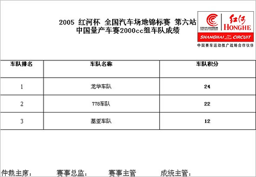 2005年全國汽車場地錦標賽第六站2000CC組車隊成績 |
