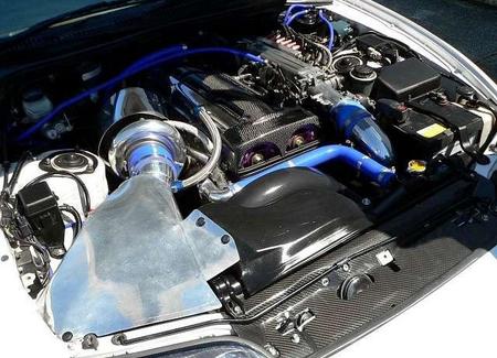 第一輛白的,單TURBO,700多匹馬力,要賣2萬多磅,發(fā)動機蓋打開是什么樣我就不說了,反正天價。后面一輛銀的,19000磅,TWIN TURBO,1000匹……