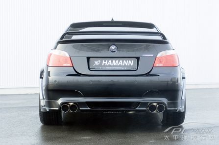 車子擁有4根不銹鋼的尾氣管直徑為76毫米,配置HAMANN 4管運動版消聲器,剩下來的引擎音更加是一種享受。懸掛降低套裝采用了特殊構造的逃荒,讓車身更低,這也讓HAMANN-M5的前半個車身要比之前降低30毫米,而后半個車身則降低了25毫米。