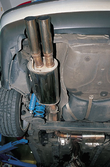 一番疾走之后,車架、懸掛讓210hp的馬力盡情發揮了一把,如何收服它便又成了問題。所幸的是其剎車部分的表現讓人十分有信心。試車時車速輕松過百,一腳稍重的剎車,車子立刻變得服服帖帖,甚至連ABS都未受到怎樣的驚擾,而原廠車制動頭段十分敏銳的特性在這里變成了各段力量表現都十分強勁,沒有了原車的那種制動突兀感。不過,據車主表示,這套剎車在車速接近200km/h以后就感覺有些收不住了(這位仁兄看來經常開快車),所以,還是要等裝上了Brembo之后才會真正放心。