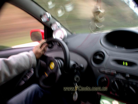 坐入駕駛室,打著火,傳來了相當夸張的排氣聲浪,并不低沉。也許是搭載賽車電腦的緣故,車子的怠速就如改裝了高角度凸輪軸般有些抖動,稍微熱車后起步,車子的頭段動力并不強,若是掌握不好離合甚至容易死火,完全不像一臺1600CC的引擎。一路上市區的行使,雖然保持在3000轉至4000轉,但可以說是毫無驚喜可言。
