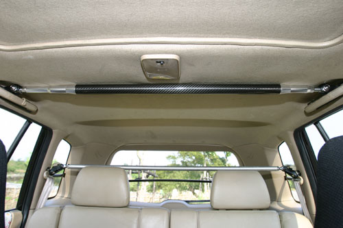 像Premacy這類RV車雖然多了頭部空間,不過整體的剛性也相對大打折扣,為此車主特別在天花板加裝B柱上拉桿,后方C柱拉桿同樣身負穩(wěn)固車體剛性的重責大任。