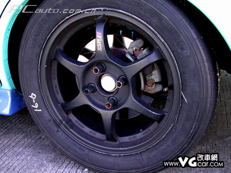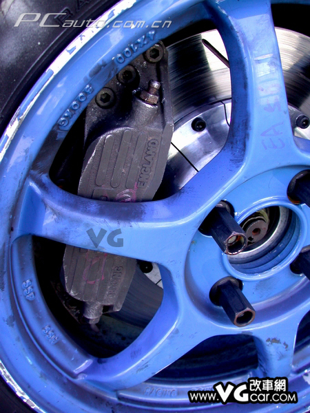 賽車除了馬力大之外,但也要能讓賽車停得快才會取得比賽的好成績。AP RACING的剎車套件在比賽場上的曝光度甚至比B字頭更高,可見其擁有突出和穩定的制動效果。這臺323賽車的前剎車系統正是選用上這個牌子的4活塞對向分泵。也許車迷們會問,剎車沒人會嫌多了吧,這樣棒的剎車這回裝在我家的車上那多安全啊!但是,這樣想就錯了,比賽用的剎車的工作溫度都相當高,在沒有達到工作溫度前其剎車效果可比原廠的剎車差多了,而且就算你每天不介意預熱幾分鐘剎車,我想你的乘客也會投訴這樣強的剎車讓他們沒坐多久就想吐吧,甚至還有必要在車尾貼上這樣的標簽“此車剎車爆強,請勿尾隨”。
