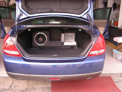 可別小看這三個擠在一起的小個子功放,推動RMS600W的PSW610J,就是其中的一臺1600DA! ![]() 中間還留著一條通道,方便車主平時取放物品 ![]() ![]() |