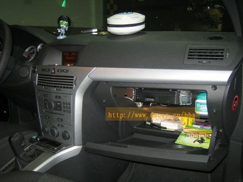 看到了嗎?真正的幕后主角(CD機主機)隱藏在副駕駛前的手套箱內(看來真正的“主角”都是大隱于市啊!)。