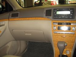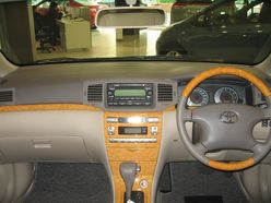 在中控臺上,桃木飾版的與國內的相同。方向盤的桃木飾條也與國內的相同。駕駛席集成4門的電動門窗按鈕。看來在豪華配置方面,兩地的消費者還是有一點相似的,國內的花冠也是將桃木飾版作為豪華車的標準之一。