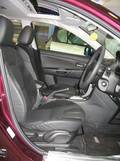 車廂內大量的設計理念與三廂版的馬自達3相同,前排運用的是手動調教的座椅,令這輛運動轎車失去了部分分數。是節約制造成本還是將這運動版轎車“運動”到底呢?