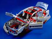 自適應式前氣囊的張開力量會隨著事故發生的強弱來自動調整。在前座乘客位子里有一個傳感器,該傳感器收集乘客的體重,把信號傳給安全氣囊,安全氣囊控制設備就根據乘客的體重來計算氣囊張開的力度。另外,新的碰撞事故傳感器收集數據確定碰撞的大小,然后控制安全帶張緊輪的收縮力度與速度。 在嚴重的碰撞中,安全帶張緊輪迅速的收緊安全帶,接著馬上放松安全帶,如此循序重復,盡量減輕乘客胸部所承受的壓力。新 E-Class 還裝備了一套新的傳感器,他可以發送信號給中央控制模塊,當側面撞擊發生時,展開側安全氣囊。
