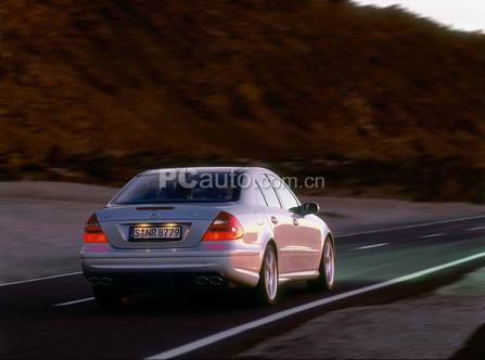 在外觀上,E55 AMG 擁有自己的專屬套件,其中包括新設(shè)計的 18 寸雙輻合金輪圈 (配前 245/40 ZR 18,后 265/35 ZR 18 寬輻輪胎)、鍍鉻雙排氣尾管與車身氣動學套件等,除了“AMG”字樣外,前翼子板上還有“V8 KOMPRESSOR”的標志。在前圍部份,夸張的進氣口及晶瑩剔透的霧燈,彰顯其出類拔萃的身份和可以放肆超趕擋路者的張狂。