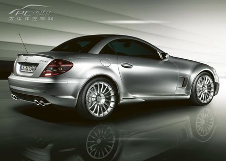 更寬,更結實以及重心更低,大家第一眼看見這款車的時候,已經可以確認這款SLK 55 AMG是相當特別的了。車子的前臉采用了經過重新設計的AMG的前包圍,上面開有巨大的進氣口,能夠有效的降低高速行駛時候車子的油溫。新設計的側面炭素出氣口保證了引擎油冷回路的運作,前部的擋泥板現在更寬,使用的是超級輕質的材料炭纖維加強型塑料。