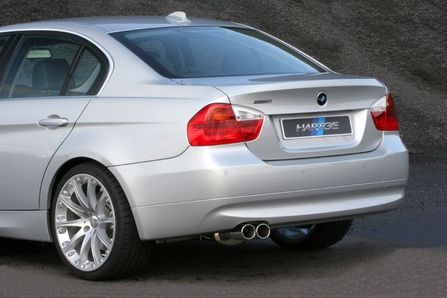 相對(duì)來說,尾部的改動(dòng)就不是那么多,Hartge為3系打造的一套輕質(zhì)不銹鋼排氣管和兩個(gè)圓形的排氣管頭,增強(qiáng)了3系在氣浪聲方面的表現(xiàn)。