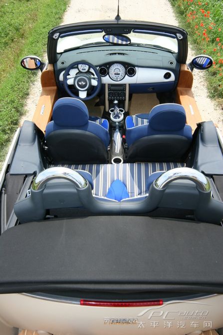 極具魅力的軟頂仍然得到了保留,不過這一次使用的是由Missoni設計的色彩鮮艷的織品,并且防水的密閉性更上一層樓。內飾部分采用了氯丁(二烯)橡膠為材質的座椅,你可以在上面跳來跳去,即使是你身上仍舊粘有從蔚藍的大海中帶回來的水滴都無關緊要。借助全球著名的水下產品公司MARES的力量,陽光、鹽水以及塵埃對于車子的侵蝕都已經不再有什么威脅。