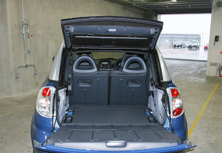 后部看去的雪鐵龍漫溢著優雅風格,后門可以分為上下兩部分,上部分是玻璃窗,而下部分則能夠用來載物,最大載重為100kg。