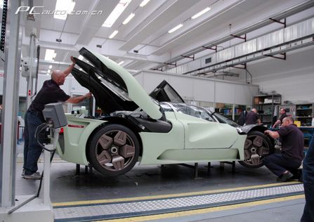 全車光滑的外型線條,有效的構造出了一個柔和但卻有力的車身氣質 - 并且完全是采用碳素纖維來制造的。全車前鼻處的錐形外觀,非常好的突出展示了該車在空氣動力學上所做出的努力以及該車讓人耳目一新的外觀。車體的中段則主要由一塊單殼式擋風玻璃所組成,同時兩側采用了漂亮的蝴蝶翼型車門。車體的后部亦顯得相當的強大有力并且非常能吸引眼球,融合了一個淚滴狀的透明后窗玻璃,同時該淚滴狀的玻璃也起到了發動機蓋的作用,最后則由采用了陶瓷涂層的排氣管來結束,就和真正的上世紀六十年代的賽車一樣。Pininfarina的風格式樣主管奧山清行強調說:“這部跑車整體輪廓鮮明的表達出了高貴典雅以及呼之欲出的流動性,整潔的線條更是典型的Pininfarina風格。”