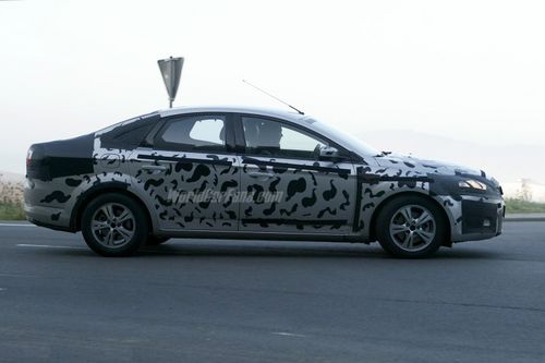 在這些偽裝之下隱藏著的,正是大家等待了若干年的車輛:福特的全新蒙迪歐,而且我們一次性就看見了fastback,estate 和sedan三個版本。這些藍色的鵝卵石再度讓我們感受到三廂蒙迪歐的魅力,在銷聲匿跡了很久之后,曾經有傳言指出saloon版本將會停止開發,但是這次的照片顯然駁斥了這個謠言。