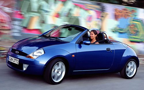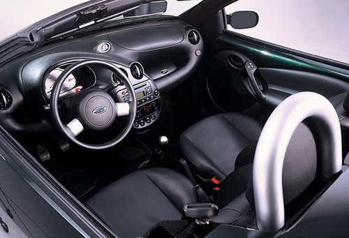 Streetka 擁有獨特的風格和充滿速度感的外形,聚丙烯材料的保險杠與車身同色,并且配合上一對夸張的前輪拱,頭燈與引擎蓋以及前輪拱融為一體,再加上前進氣口兩端大大的霧燈,更加突出了跑車的風格。為了適應16寸的大輪圈,前后輪拱都進行了小許加寬,車子穿上四只專門為其設計的“鞋子”(尺寸為195/45),車的前輪距較原來的 Ka 加寬了22毫米,達到1417毫米,而由于后懸掛采用了全新的設計,因此后輪距增寬到1452毫米,目的是可以裝下更寬更堅固的雙梁懸掛設計,使得車輪側面的穩定性,同時提高了車輛轉彎時的車身強度。底盤也經過一些修改,所以油箱的位置也有一些變化,現在的油箱置于座椅后面的兩條弧形保護桿與尾箱之間的位置。