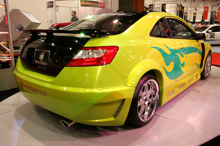 也許Mattel是被熱心的車型改裝者們批評得最多得一家公司但是不可否認出自他們之手的Hot Wheels Civic Si 就是用來娛樂的。引擎使用的是個性化過的Turbonetics渦輪系統(tǒng),擁有 Spearco 內(nèi)冷裝置。外觀部分采用了Tein 彈簧,Momo FXL輪轂和BF Goodrich輪胎以便降低車身高度。內(nèi)飾部分則備有Momo座椅,踏板、換檔器和Momo Trek 方向盤。