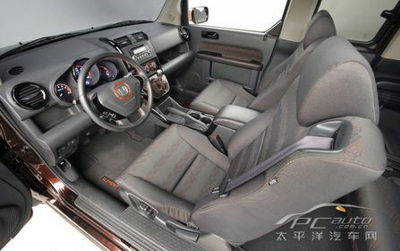 車子在性能方面的提升遠勝于表面的改進,在使用了運動型的懸掛之后,不單讓車子駕駛起來更加具有賽車的感覺,同時也讓Element SC的原型要比原來的版本低3英尺。再加上全套的空氣運動套裝,就能更加降低車身,緊貼地面的車身姿態,正是車輛速度的保證。 Element SC采用了全著色的外部面板以及裝飾,車頭射燈以及經過空氣動力學改良的黑色柵格。至于內飾部分,則更加傾向于城市的氛圍,包括駕駛員用的中央控制臺,黃銅色的儀表面板在LED燈的反光之下愈顯華麗。