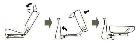 以 60:40 比例分開(kāi)的后座椅非常方便易用,特別適合需要每天變動(dòng)座椅的車(chē)主。拔動(dòng)座椅靠背的控制桿,頭枕便會(huì)向前翻動(dòng),而座椅的底部會(huì)向上折疊到和地面垂直的位置緊貼椅背,整張座椅只需幾秒鐘的時(shí)間便完全折疊起來(lái),使得對(duì)車(chē)內(nèi)空間的影響減到最低程度。反過(guò)來(lái),只需要輕輕的抬起椅背即可恢復(fù)座椅原來(lái)的樣子,座椅的收、放完全由一個(gè)動(dòng)作就可以完成。這就是該車(chē)的 one-motion 由來(lái)的原因。