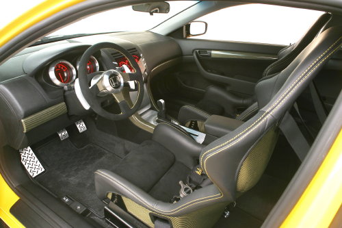 內(nèi)飾改裝:F1風(fēng)格槳片換檔,原型多功能儀表顯示,并且顯示診斷信息,Sparco 碳纖維桶形座椅采用高檔 Alcantera 羊皮材質(zhì),前座4點(diǎn)式安全帶,3條輻賽車方向盤,鋁制運(yùn)動型踏板。