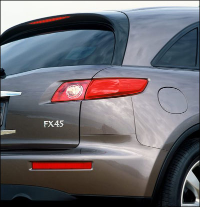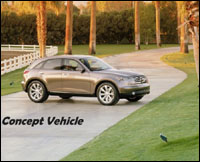 官方首次正式公布2003 Infiniti(無限) FX45車型的照片,這是一臺充滿跑車味道的SUV,強(qiáng)勁的性能配合杰出的操控打破了傳統(tǒng)的設(shè)計(jì),該車的正式展出會在2003年1月6日舉辦的底特率車展上,動力方面會搭載一臺4.5升的V8引擎。現(xiàn)在知道的詳細(xì)資料只有這些,請留意太平洋汽車網(wǎng)的報(bào)道。(圖片可點(diǎn)擊放大)