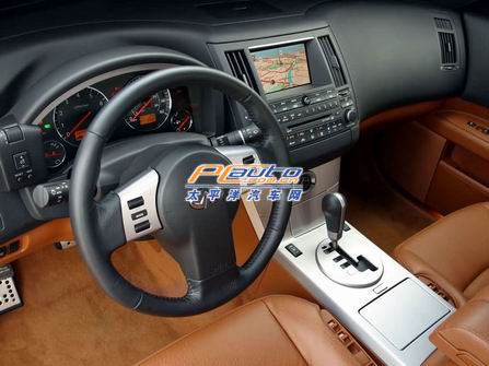 設計師將 FX45 的內部分為“駕駛區”、“乘客區”和“娛樂區”,以實現高度個人化的車廂布局。在“駕駛區”內,各項儀器和控制的安排皆以駕駛者專注于路面為依歸,感覺有如置身飛機座艙。可作八方向調整并附記憶功能的座椅、駕駛者專用的自動恒溫空調、6.3 寸資訊顯示屏幕(可升級為 7.0 寸),以及三輻式真皮方向盤連帶音響控制按鍵,一切完全符合駕駛者的駕駛情緒。