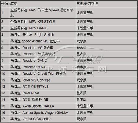 馬自達東京2006車展沙龍出展車型一覽表