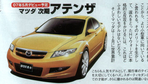 全新馬自達6在我們曝光本田最新5款車型的時候,也跟隨著雜志的未來新車一起展現在我們面前,假想圖如下,假想圖上我們隱約看到了RX-8的設計元素。