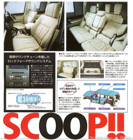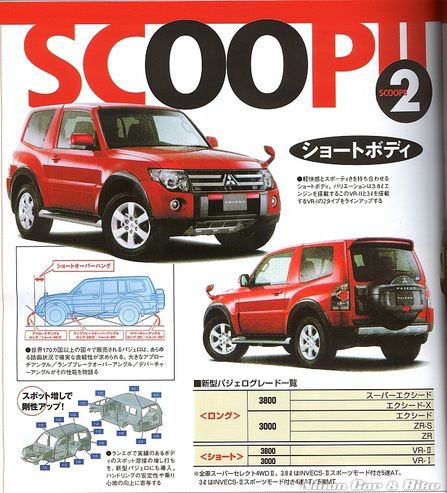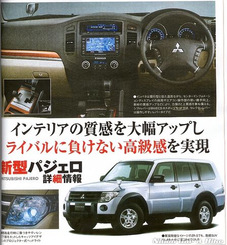 最近通過《Nihon Car & Bike》這家雜志社,我們得到了三張新款三菱Pajero的無偽裝圖片。通過這些圖片我們可以看到二門版和四門的外形,新款的前端有一個與現款差別較大的改變,更圓滑,更流暢,兩門版上一體式的保險杠看起來更像是一個滑板。美國市場可能不會見到兩門款,但四門版的車頭一點不輸二門款,而且第三排的擁有同級車中最高的頭枕。內飾呢,與現代車型相比則大大簡化了。