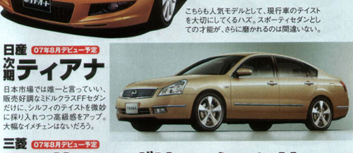 日產(chǎn)的天籟是日班市場(chǎng)唯一的中級(jí)前置前驅(qū)車輛,這一次在外觀上沒有什么大幅度的改變,但是你可以察覺到其洋溢出與之前的版本有著微妙的質(zhì)感差別。