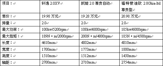 國內的軒逸的競爭對手