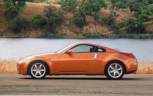 因此,Z系并非一輛真正前中置引擎的汽車,但他以這種緊湊的引擎布置方式作為該車的炫耀之處,2650mm的軸距,很寬的輪距以及很短的懸垂(整車長度4310mm),前后重量比為53:47。與91'款的300ZX相比較,整車長度基本不變,但獲得了更好的前后重量比和加長了軸距,新的平臺同時(shí)增加了350Z車身的剛性。
