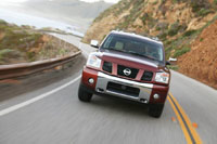 由于以全尺寸的皮卡Titan為藍本,車廂空間非常寬敞。雖然安放了三排座椅,但腿部仍能非常舒服地伸展。而且儲物空間也非常可觀,第二、三排座位均可根據需要折疊到與座椅墊相同的高度,更增添了儲物容積。車頂標準配置行李架,提高了SUV的實用性。車內有閱讀燈、空調出風口、多處儲物盒、杯架及DVD導航系統。(圖片可點擊放大)