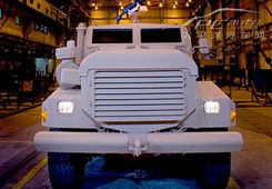 感謝ray網(wǎng)友報料,這輛4x4 越野車是 Force Protection 公司出品的 Cougar,"一輛可防地雷的中型車輛"。在它的面前,美國的(Hummer)變得像玩具車一樣了。