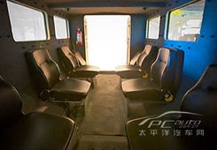 這輛車將近二十英尺長,車寬超過八英尺,重量達(dá)到十五噸。由一顆可輸出 330 匹馬力的履帶柴油引擎驅(qū)動,可以乘坐十人,每個座位都有四點(diǎn)式的安全帶。如此特殊用途的車輛,相信產(chǎn)量也不高。而且聽說下次SEMA車展會展出其改裝車,里面將會裝備5頓重的低音炮。