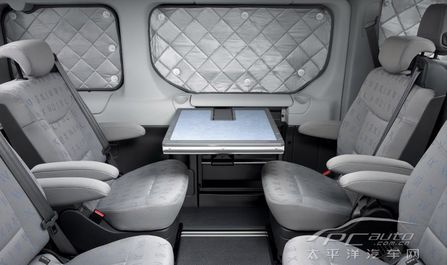 車上還有可編程的停車加熱系統(tǒng),能夠在發(fā)動機熄火之后仍然讓車廂內(nèi)溫馨如一。如果天黑了,特制的窗簾可以防止外部的光線射入,以免影響到喜歡睡懶覺的乘客,同時里面的動靜也不會被外面的人看見,提高車內(nèi)的隱密度。車子里面的DVD播放器支持無線耳機,會為你的長途跋涉消磨不少時間。