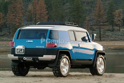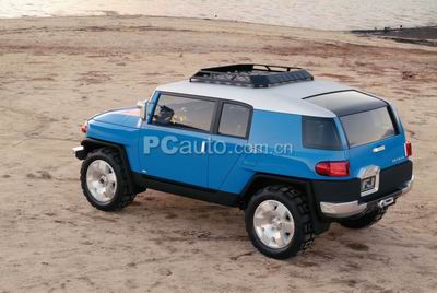 事隔40多年,一個年僅25歲的年輕設(shè)計師Jin Kim,從FJ40這款車型的外型上得到靈感、設(shè)計了FJ Cruiser,這款3門掀背的SUV,主要表現(xiàn)的是機能性、價格便宜以及簡單的設(shè)計,目標(biāo)客戶層則是喜好戶外生活的年輕車主;新概念車外型上則承襲了FJ40的精神--樸素儉約、剛硬方正、粗獷不羈。FJ Cruiser以水箱罩外框連接的左右頭燈、幾近直角的擋風(fēng)玻璃、由2種不同材質(zhì)組合成的雙色車頂、直線折板式輪拱等特點,都承襲自FJ40;但是壯碩的外觀風(fēng)格、具機能性的外型,則是呈現(xiàn)SUV的重點精神所在。FJ Cruiser嵌入在葉子板下的輪拱、前后保險桿跟車身接近下緣部份,都是以黑色塑料包覆,可以在越野時保護車身鈑件,前后保險桿除了塑料之外,還有露出一部分金屬材質(zhì),其中一部分經(jīng)過拋光處理、一部分則施以磨沙處理,這種對比的方式適度的點出了質(zhì)感。值得一提的是,一般SUV也未必會像它一樣車頭車尾都有絞盤,至于在后照鏡上裝2個聚光燈,那就更是新概念了!