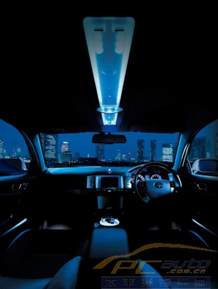 中控臺造型風格現代,多有新意,金屬飾板和桃木裝飾的搭配是豐田系列的首次嘗試。車頂中央安裝了一條由車頭直通后座的LED燈組,由21個白色的發光二極管組成,不僅燈光明亮而且增添了車內的豪華氣息。