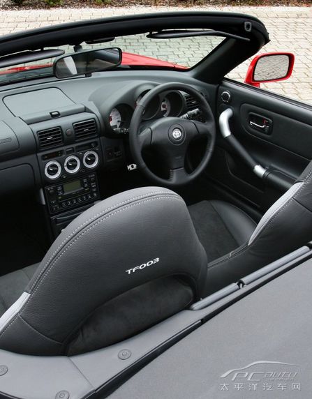 車子裝備了電動車窗以及后視鏡,真皮包裹的方向盤和換檔把手,可以開合的軟頂棚,可加熱的后玻璃窗,檔風板,合金輪轂等等。車子的心臟部分使用的是中置的138馬力的1.8升引擎,經過輕質處理,采用后輪驅動的MR2 TF300百公里加速成績在8秒之內,車子的極速可以達到131英里/小時,平均油耗38.2英里/加侖,二氧化碳的排放量為178克/公里。