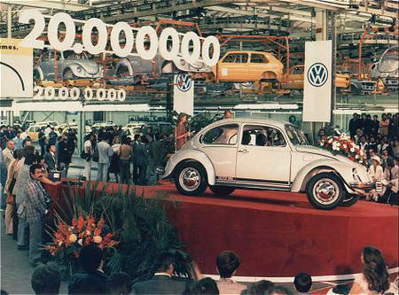 1974年6月1日上午11點19分,位于沃爾夫斯堡的大眾本廠停止生產甲殼蟲。8月,宣布停產VW1303A。1975年7月,VW1303也停產了。直到1978年1月19日,德國本土生產的最后1輛甲殼蟲汽車在Emden下線。到此為止,德國本土共生產了16,255,500輛甲殼蟲。但是在海外的工廠里,甲殼蟲仍然以每天1000余量的速度進行生產。