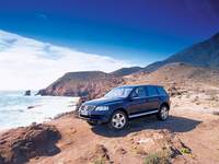 雖然與Cayenne共享底盤,但Touareg的外貌仍保持了大眾家族的特征,造形不像Cayenne那樣來(lái)個(gè)改造。使用的引擎是3.2升V6汽油及5.0升V10 TDI雙Turbo柴油發(fā)動(dòng)機(jī),分別具有220bhp、31.1kgm以及313bhp、76.5kgm,之后還會(huì)加入另2款發(fā)動(dòng)機(jī),分別是新的5缸2.5升TDI柴油機(jī)以4.2升V8汽油機(jī)。變速箱都是6前速,有手波及Tiptronic自動(dòng)波。使用自動(dòng)的變速器,駕駛員能通過(guò)DSP(動(dòng)態(tài)轉(zhuǎn)檔程序),Tiptronic檔桿或者是方向盤后的槳片換檔。