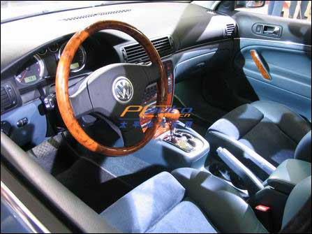 Passat W8的外觀仍維持與其他Passat兄弟相同的流線動感輪廓,頭燈組與引擎蓋和前保險桿曲面滑順地合而為一,內部嵌入二盞凸透鏡式圓形車燈,不僅看起來晶亮高級,而且還是可以綻放出明亮白光的HID氙氣頭燈;此外,包括前后保險桿、后視鏡、車門把手、防撞飾條,均經過與車身同色化涂裝處理,防撞飾條上還嵌入一道細細的鍍鉻,整體性頗佳、而且質感一流;至于線條簡潔有力的車尾部分,視線焦點集中在燈組設計,直立式三層燈罩和二個紅色圓燈的組合,在夜晚煞車燈亮起時,營造出有如跑車般的矯健動感。當然,蘊含275匹馬力頂尖性能的Passat W8,多少也得在外觀上營造出兇悍的跑房車架勢,因此Passat W8換上了更霸氣的前進氣口,搭配動感的BBS名廠17寸鋁圈、225/45 R17的低扁平比寬胎,還裝上鍍鉻四排氣尾管,讓人一眼就能分辨出Passat W8不同于其他兄弟的頂級跑房車定位。