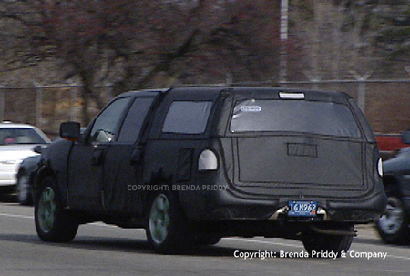盡管業界對福特Expedition加長版的問世已經議論紛紛,但是它的真車照片近日才被泄露出來。福特Expedition在福特陣營中屬于大型SUV,而Expedition加長版的車身長度比普通版Expedition增加了約16英寸,所以可以當之無愧的稱為“越野巨無霸”了。(圖片可點擊放大) Expedition加長版預計2006年正式推出,該車會再次基于優化過的福特F-150平臺進行開發。照片中的這輛樣車據說配備了V6柴油發動機,預計在2007年以后將會配備6.2升V8 Hurricane發動機。
