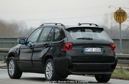 圖片中層層偽裝下的新車就是2007款寶馬X5,這也是寶馬X5系列的第二代車型。和第一代寶馬X5相比較,2007款X5的車身長度、寬度和高度都有所增加。首先面世的2007款X5將是一款五座車型,七座車型將稍后推出。
