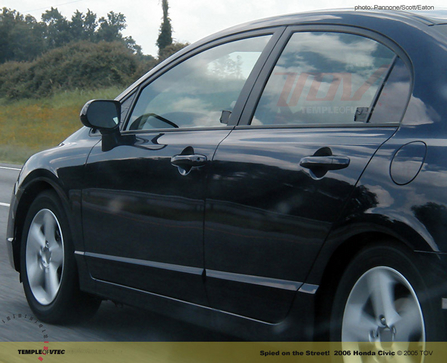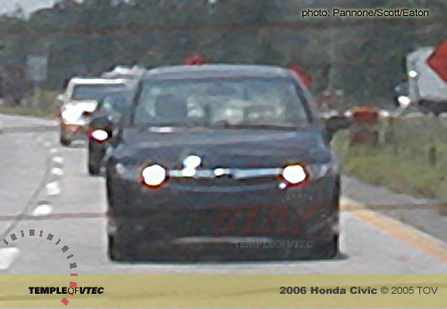 編輯從相關渠道了解到這些思域路試的諜照。這是一群大學生在旅游的途中偶爾拍攝到的, 雖然照片的象素著實不高,但是我們還是有理由相信這就是本田即將推出的06款思域轎車。
