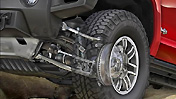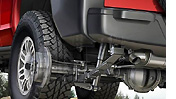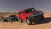 悍馬H2 SUT的前后懸都非常短,這樣可以保證它擁有較大的接近角和離去角。前輪采用獨立懸掛,后面為五連桿式懸掛。很有特點的機蓋下面是6升的V8發動機,在5200轉/分可產生316馬力的最大功率。在4000轉/分時產生360 lb.-ft的最大扭矩。變速器為四擋自動變速,并配合全時四驅系統。 |