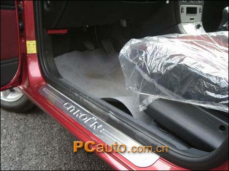 上車前,注意一下多了一個迎賓鍍鋁金屬踏板,目的是增強豪華舒適感覺 門把拉槽也采用金屬制成,做工也精細了很多 方向盤套上了真皮,內(nèi)裝板采用了鍍鋁,一改舊款略顯粗糙的風格,CD仍是單碟