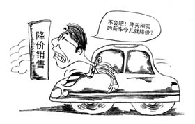 “汽車作為僅次于房產的大宗消費品,頻繁降價是不正常的,這不但會給消費者造成很大的損失,而且也有損消費者對該品牌的忠誠度,汽車廠商應該對降價前不久剛買車的消費者有所補償。哪怕是給予延長免費保養周期或者退還部分資金,這也表明一種對消費者負責的態度。”中國消費者協會的有關人員對記者如是說。