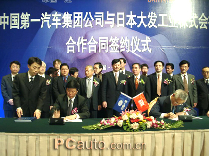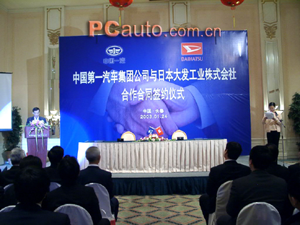 中國一汽與日本大發(fā)工業(yè)株式會社就生產(chǎn)多功能SUV車項目達成協(xié)議,簽字儀式于2003年1月24日在風景亮麗的長春舉行。這是中國一汽集團公司與日本豐田汽車公司合作后的又一成功杰作。它標志著兩強聯(lián)合后全力打造微型汽車,進軍中國SUV市場已步入了一個實質(zhì)階段。